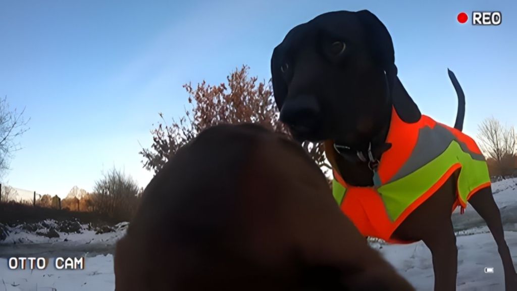 The video opens with the onscreen text that reads, “A dachshund’s POV,” with “Everything is huge” stamped underneath. Otto’s view captures a wintery walk where snowy paths stretch out, and other dogs look like they belong in a different realm — at least in terms of size.