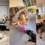 As soon as the bubbles appear, the baby starts excitedly trying to say “bubbles” before the dog steals the show by jumping and snapping at bubbles mid-air and “eating” them in that harmless and goofy way that dogs do. Every time the dog makes a move, Jax breaks into loud, contagious laughter, the kind that makes you laugh through the screen.